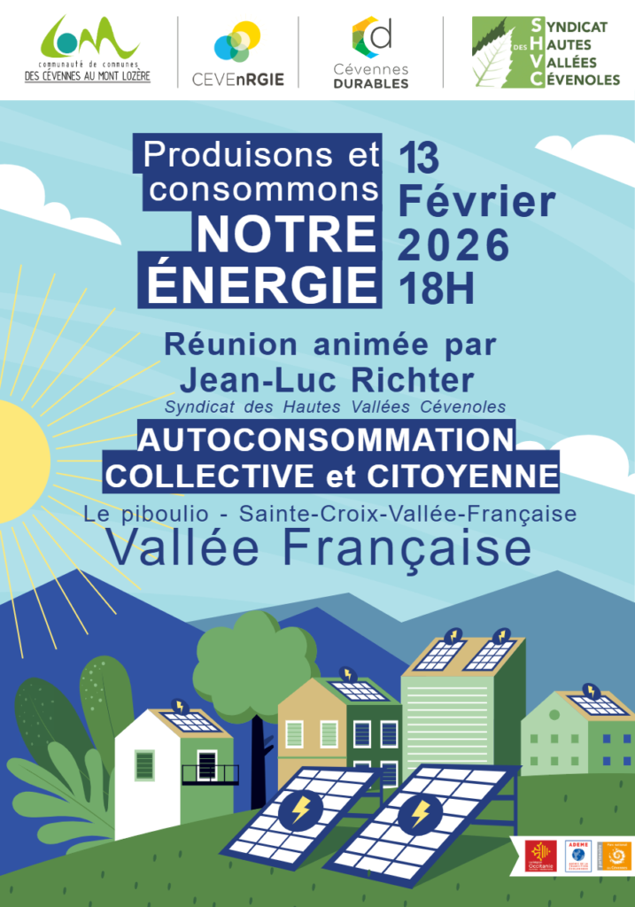 Informations / Vie de la commune Réunion CEVEnRGIE sur l’autoconsommation collective et citoyenne – vendredi 13 février 2026 à 18h00 au Piboulio par mairie6 février 20266 février 2026